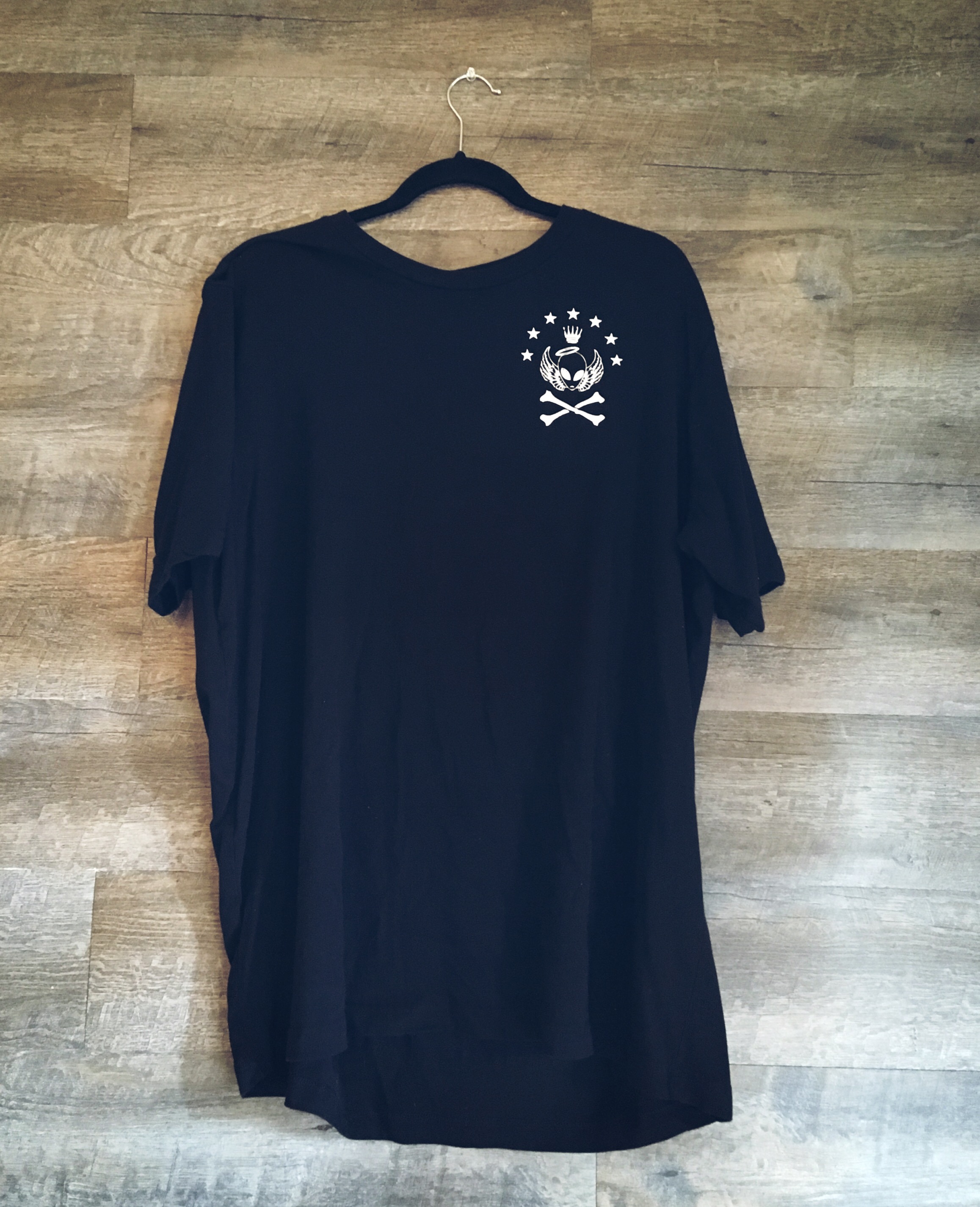 Black crew neck graphic tee. Soft spun 100% cotton for superior comfort and style.